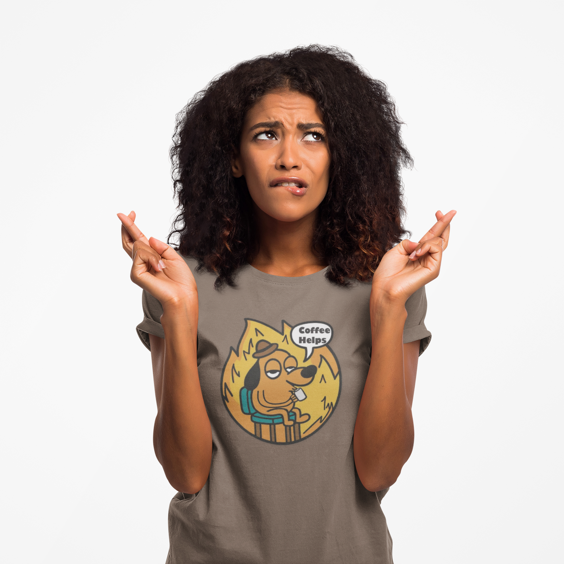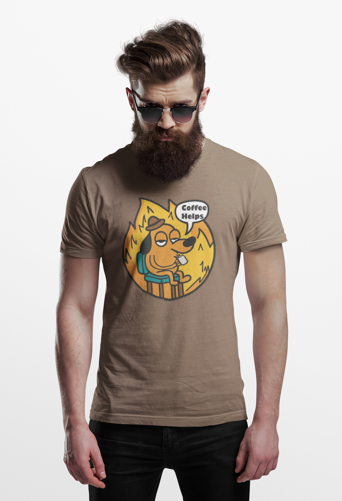 Funny Dog Sipping Coffee T-Shirt — 'This Is Fine' Office Burn Graphic