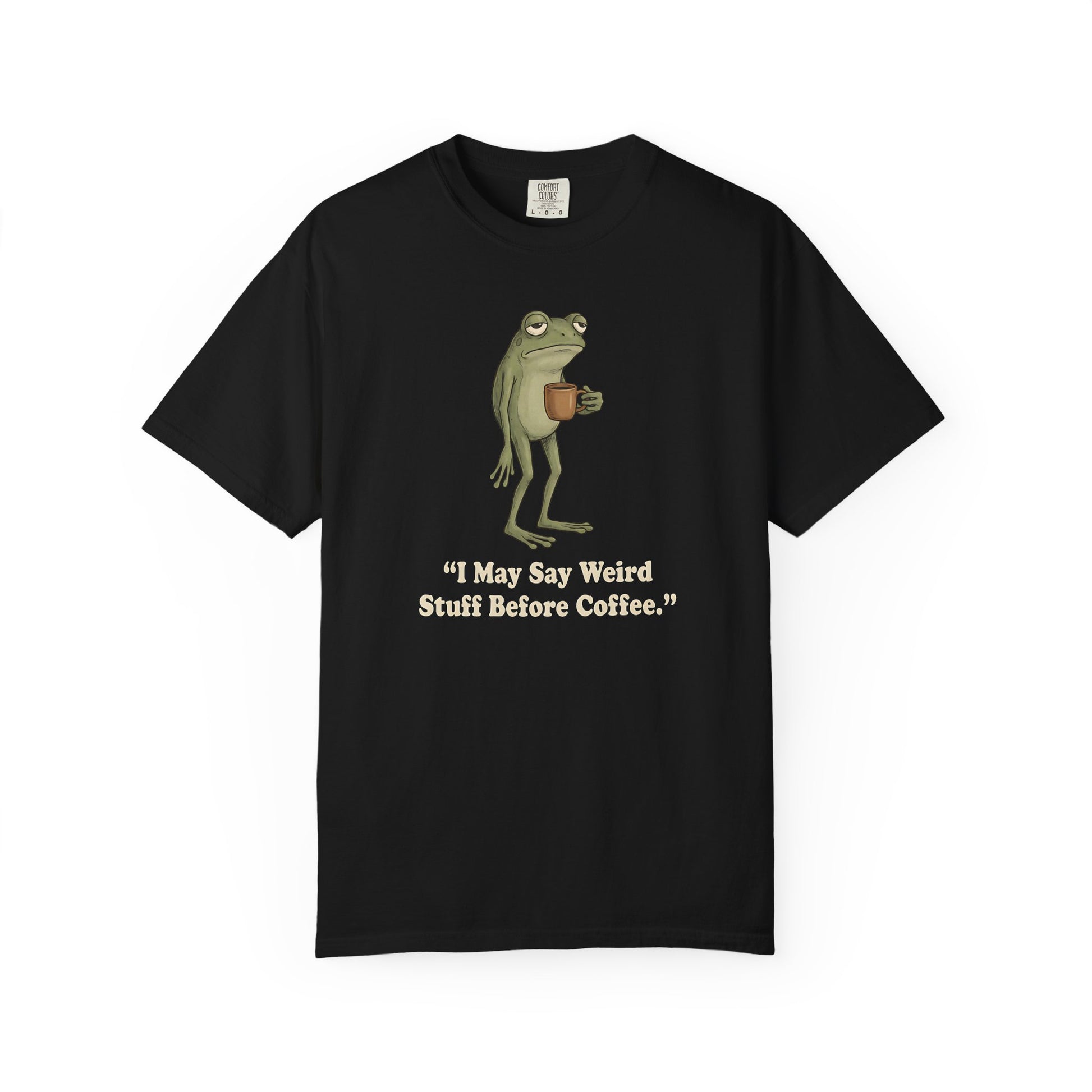 I May Say Weird Stuff Before Coffee - Funny Frog T-Shirt Coffee Humor