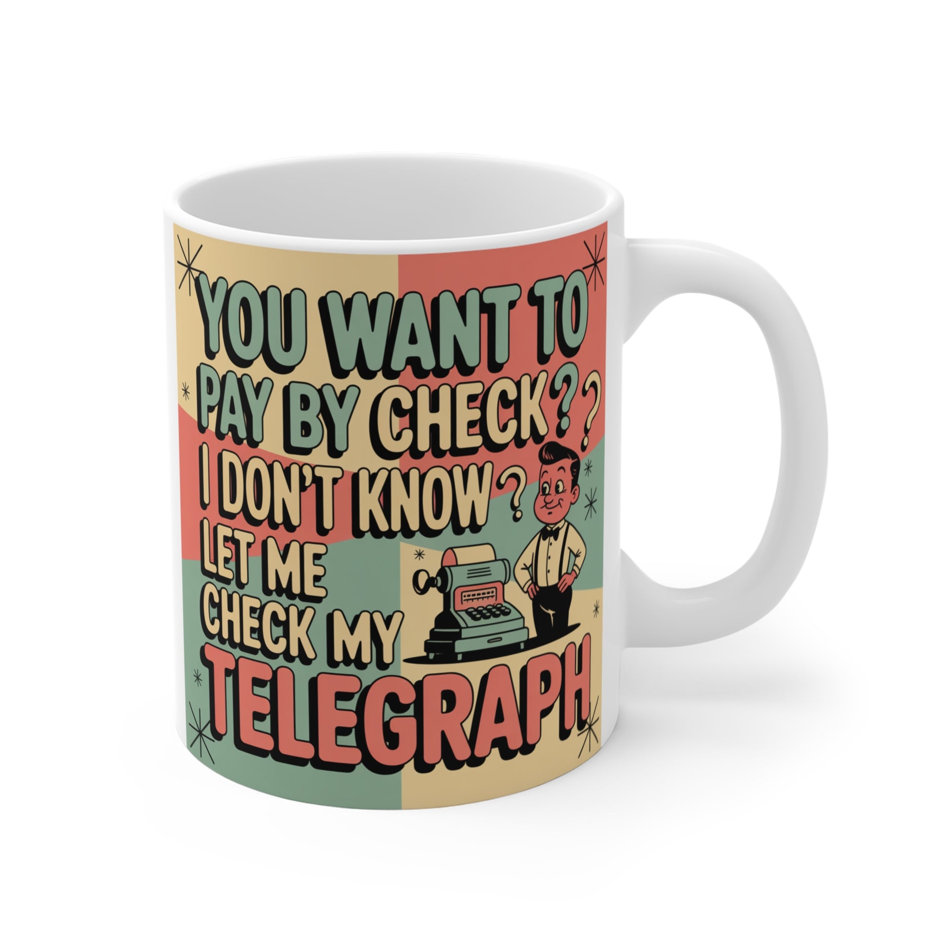 “You Want to Pay by Check? Let Me Check My Telegraph” 11oz CoffeeFunny Vintage Retro Novelty Mug